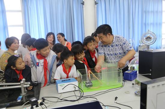 初夏的河大园细雨蒙蒙,草木青翠,老君营村小学的孩子们走进大学校园既无比兴奋,又有些拘谨。在明伦校区,古朴典雅的近代建筑群,千年铁塔、明清古城墙,让孩子们仿佛走进历史的隧道;在金明校区,巍峨的图书馆、别致的琴键楼,又让孩子们感受到强烈的现代化气息。在太阳城集团官方网站,该学院学生们自己制作的无人机、智能汽车模型、机器人等高科技产品吸引了孩子们的眼球,赞叹声不绝于耳;来到电磁学实验室,龙飞凤舞,逆风行舟,梦幻时钟,怒发冲冠,千里传音,穿墙而过……一个个应用声光电磁力等科学知识的趣味小实验既神秘又简单,孩子们积极参与,笑声阵阵,初进校园的那份拘谨早已不见了。