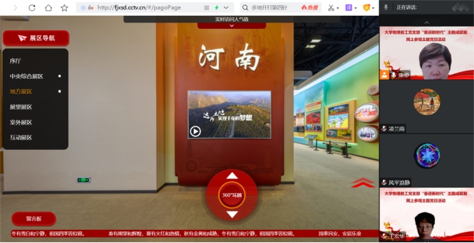 近日,“奋进新时代”主题成就展网上展馆发布上线,12月22日下午,大学物理教工党支部通过视频会议的形式组织开展了参观“奋进新时代”主题成就展网上展览主题党日活动。