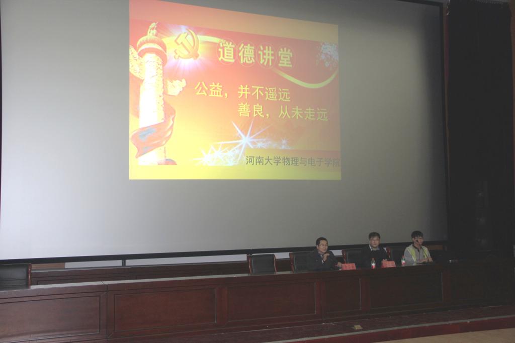 道德讲堂在悠扬的太阳城集团官方网站校歌声中拉开了序幕。在讲堂上,一张张珍贵的照片、一节节动人的视频、一段段生动的文字,一句句感人的讲述,真实再现了10年来张晓晖和志愿者们热衷公益事业的道德历程。他们以积沙成塔、集腋成裘的形式筹集善款和物品,以无所畏惧的精神翻越崇山峻岭、趟过湍急溪流,把“母亲”般的爱心传递给贫困地区渴望知识的孩子们。“母亲助学金”发展至今,张晓晖共募集捐款140万元(包括他个人的一半工资20万元),资助了贫困生2000余人次;先后33次带队前往南召山区支教助学;为贫困地区的4所小学建了图书室,3所小学捐赠了体育器材;捐献的7000余册图书让从未走出大山的孩子认识了外面的世界。