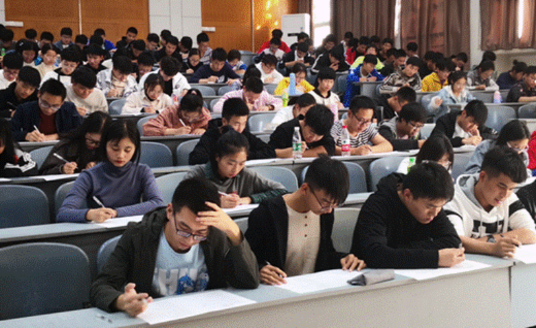 在组织学生学习实验室安全知识后,为检验学生学习成效,11月14日,学院组织2019级新生在金明综合楼进行安全知识测试。考试现场,只听见笔尖沙沙的答题声,同学们沉着冷静,认真答题。
