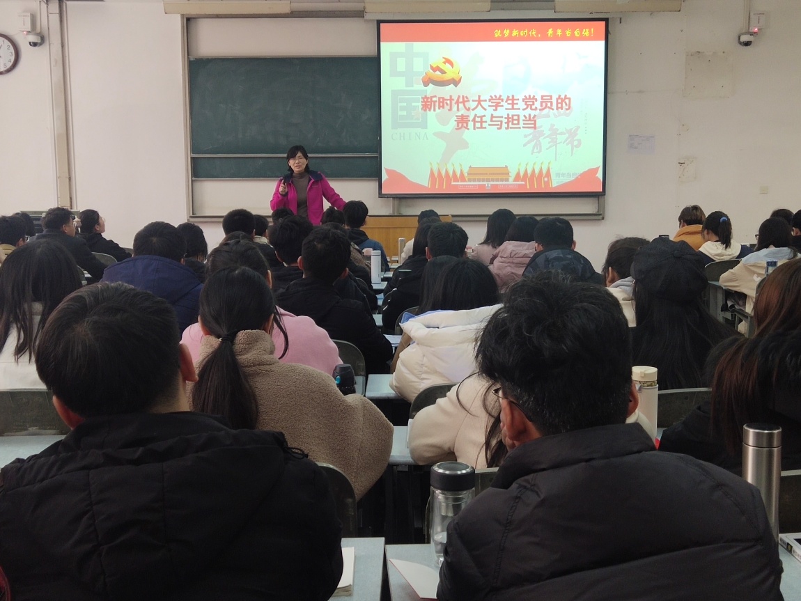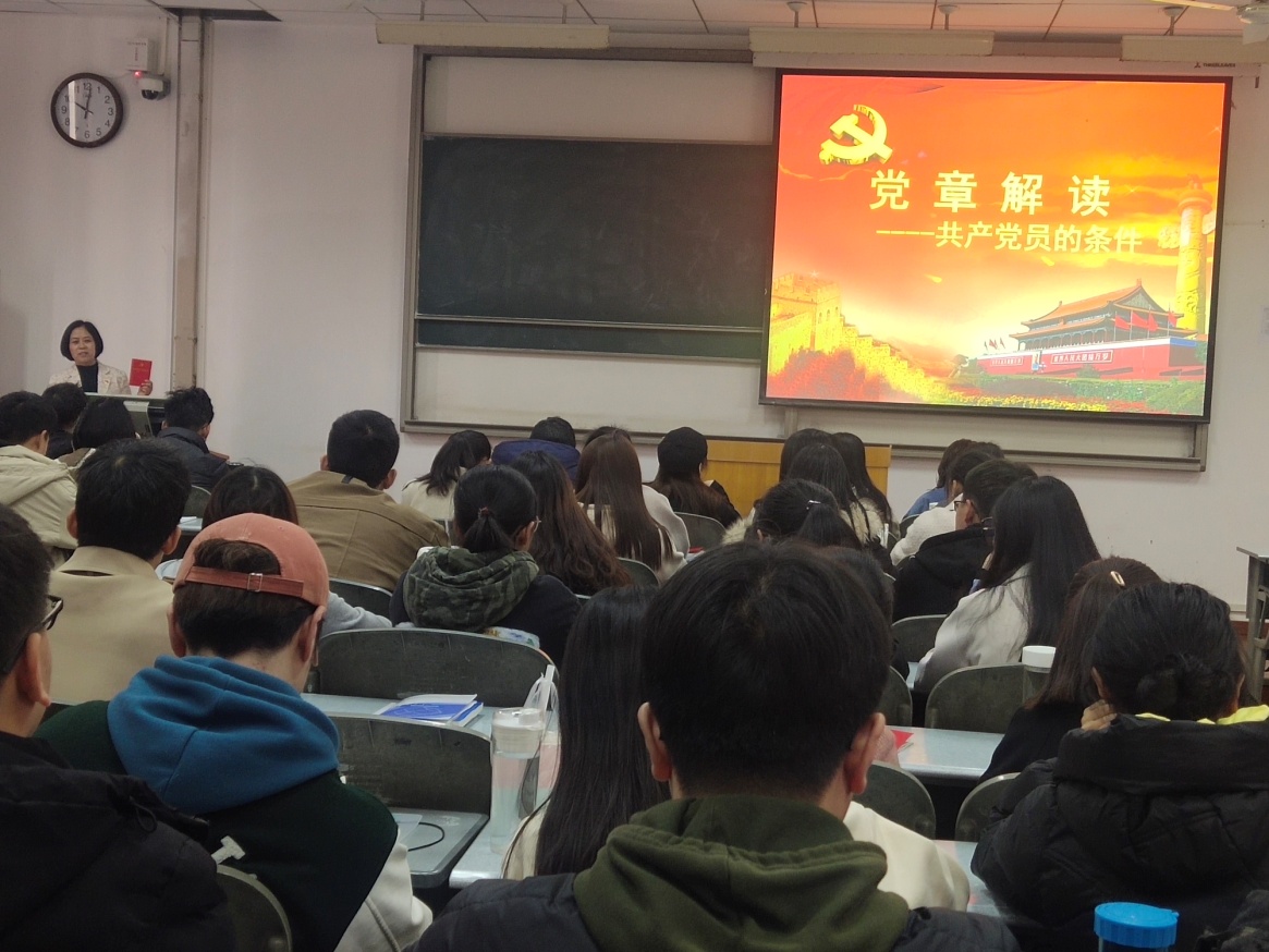 3月18日,开班仪式在金明综合楼6104教室举行。学院党委办公室主任孔瑞婷详细说明了本次培训的课程安排和纪律要求。她讲述的组织发展工作程序,让大家对“双推双评三全程”的入党程序有了更深入的认识。
