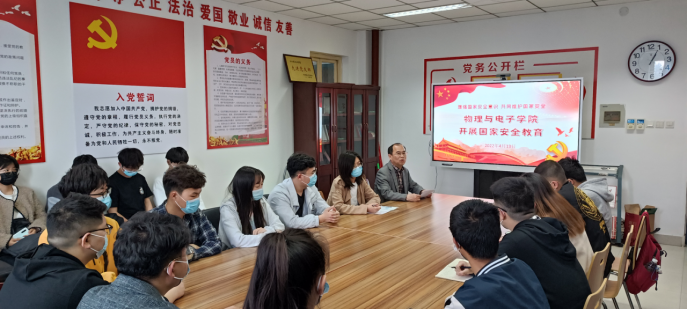 在第七个全民国家安全教育日来临之际,为普及国家安全知识,增强全体师生国家安全意识,为党的二十大胜利召开营造良好氛围,4月13日中午太阳城集团官方网站在A309通过线上线下相结合的形式开展“全民国家安全教育日”宣传活动。学院党委副书记刘寒冰、全体辅导员及各年级学生参加此项活动。