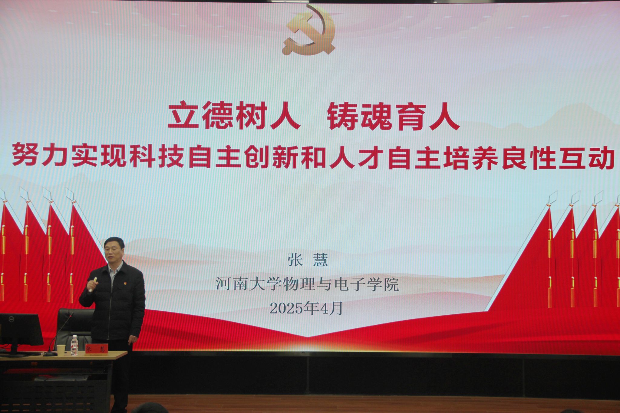 学院党委书记张慧以《立德树人、铸魂育人,努力实现科技自主创新和人才自主培养良性互动》为题为大家上了一堂内容丰富、精彩生动的思政课。带领大家一起学习了习近平总书记寄语新时代青年的一系列重要讲话精神。并传达学习了全国两会精神和《教育强国建设规划纲要(2024-2025年)》等内容,引导大家弘扬伟大建党精神,锤炼鲜明政治品格。他对广大积极分子提出三点期望,一要坚定理想信念,让勤奋学习成为青春远航的动力。二要彰显青春作为,在中国式现代化建设中挺膺担当。三是不负青春韶华,在奋斗实践中练就过硬本领。