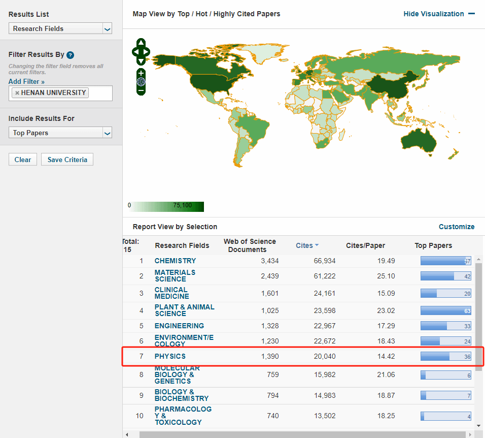 根据科睿唯安ESI数据库(Essential Science Indicators,基本科学指标数据库)5月8日更新数据,我校物理学(Physics)首次进入全球排名前1%行列。我校在物理学学科领域共发表论文1390篇,其中高被引论文34篇,总被引频次20040次,篇均被引次数14.42次。