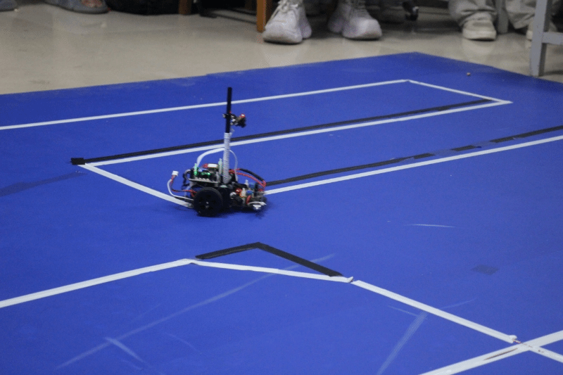 室外赛场上,竞赛氛围更为热烈。极速越野组直面沙地、坡道等复杂地形挑战,新增的语音指令避障人机交互任务,进一步考验智能车的环境适应能力;气垫越野组在操场赛道完成往返赛道竞速、八字型赛道竞速及特殊路况测速等科目,在复杂地形中展开激烈角逐。完全模型组采用I型车模,借助先进的视觉识别技术,快速感知赛道元素,精准完成多目标识别与自主决策导航,其创新设计与出色性能令人瞩目。