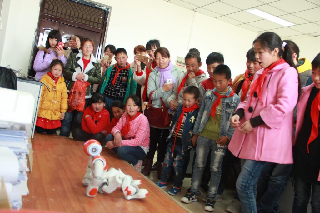 行政党支部又采取“请进来”的方式,组织老君营村小学的师生们参观我校新老校区,观摩学院创新和科普实验室的智能机器人、仿真机器鱼、3D打印技术等,让他们感受百年河大深厚的文化底蕴,感知物理、电子科学的神奇奥秘,从而开阔小学生们的视野,激励小学生们树立远大的理想。