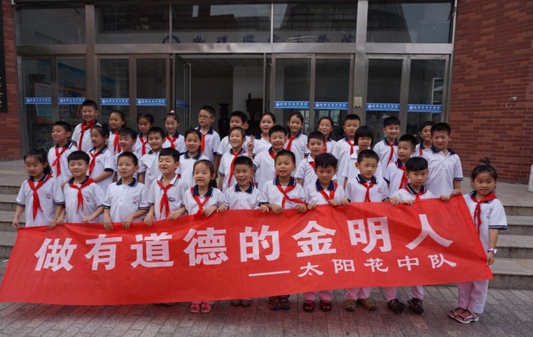 最后,金明小学一五班太阳花中队的小朋友在实验楼前拍照留念,依依不舍地离开了这里。他们纷纷表示长大了要来这里学习科学知识!
