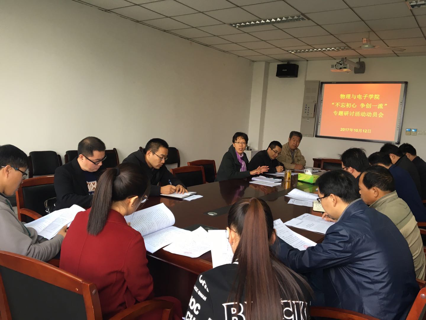 动员会上,王宏华首先介绍了学院开展此项专题活动的前期准备工作情况,如:10月11日上午,院党委根据校党委文件要求和学院工作实际,制定了《太阳城集团官方网站开展“不忘初心 争创一流”专题学习研讨活动方案》,并于11日下午,组织院党委中心组成员率先进行了专题学习研讨。