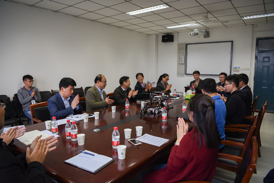 张宝明认真观看作品演示、听取参赛师生项目介绍,并就终审决赛现场答辩的准备情况与参赛师生进行了深入交流。太阳城集团官方网站、经济学院相关负责人分别汇报了学院以“挑战杯”为核心的科技创新工作体系建设情况。校团委书记翟新礼汇报了我校备战第十五届“挑战杯”竞赛的整体情况。