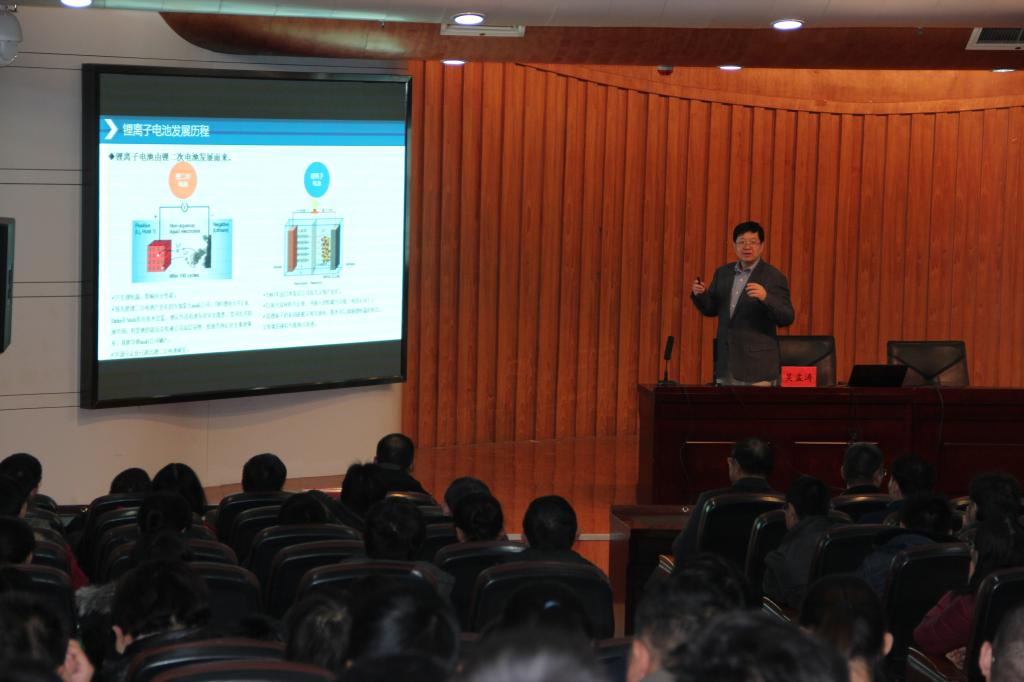 会上,顾玉宗介绍了吴孟涛教授的个人简历和主要业绩。副校长刘先省向吴孟涛教授颁发了聘任证书,并对吴教授加盟我校表示热烈欢迎。在随后的讲座中,吴孟涛以“锂离子电池材料在新兴产业中的发展与应用”为题,就锂二次电池层状正极材料(钴酸锂、镍钴锰三元材料等)、尖晶石型正极材料(锰酸锂等)和橄榄石型正极材料(磷酸铁锂等)的发展历史、各自的优缺点、改性方法等进行了深入浅出的分析,指出了未来几年在储能电池、新能源动力电池方面锂电池材料的发展方向和趋势,并对未来具有更高能量密度的锂硫电池、锂空气电池进行了展望。此次报告加深了大家对锂离子电池正极材料的相关问题的理解,认识到电池材料在新能源发展中的重要作用,并对吴教授在该领域的科研成果及其在产业化中的突出贡献深表敬佩。会后与会师生踊跃提问,就感兴趣的问题与吴教授进行了讨论和交流。
