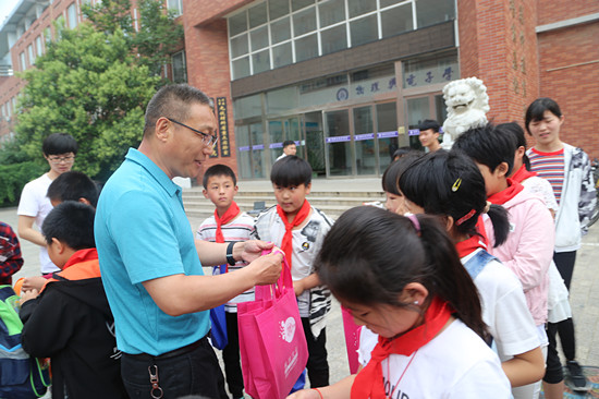 邱永宽代表学院向孩子们赠送了学习文具,提前祝大家六一节快乐。