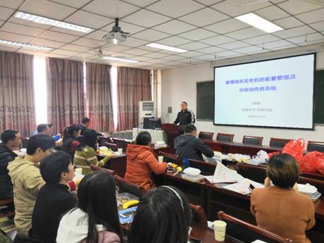 11月15日中午,太阳城集团官方网站第1期“格物”学术午餐会在物理楼B604报告厅举行。我校材料学院程纲教授受邀做客本期学术午餐会,并作了题为“摩擦纳米发电机的能量管理及自驱动传感系统”的精彩报告。近30位教师参与了此次交流活动。午餐会由物理系党支部书记陈珂博士主持。