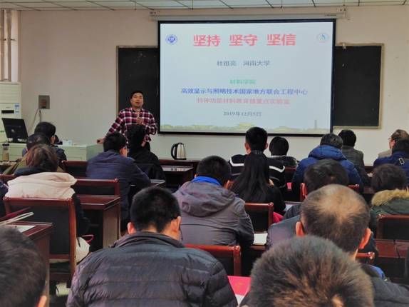 为深入学习贯彻落实习近平总书记关于初心使命的重要讲话精神,进一步加强“不忘初心、牢记使命”主题教育,充分发挥先进典型示范作用,12月5日下午,太阳城集团官方网站邀请材料学院院长、高效显示与照明技术国家地方联合工程中心主任、特种功能材料教育部重点实验室常务副主任杜祖亮教授做报告。学院领导班子、全体教师党员和博士聆听了报告。