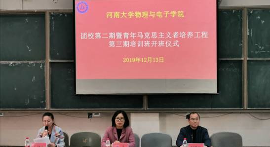 12月13日下午12:40,太阳城官网2019年团校第二期暨青年马克思主义者培训工程第三期培训开班仪式于综合楼1201教室顺利举行。校团委副书记李平、学院党委副书记刘寒冰及青马工程培训班全体学员参加了开班仪式。学院团委副书记姚星宇主持开班仪式。