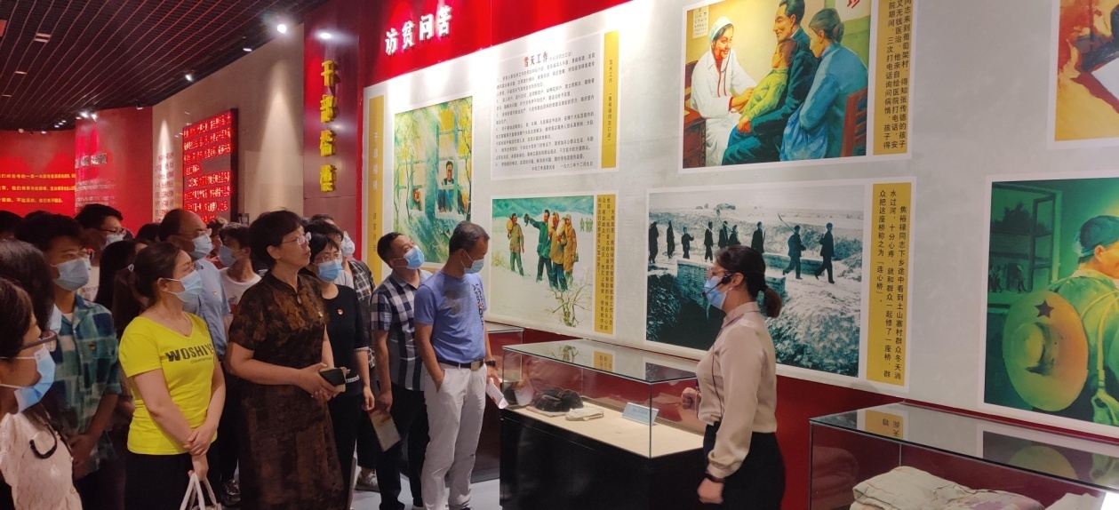 全体党员首先来到焦裕禄烈士陵园,怀着无比崇敬的心情瞻仰了焦裕禄烈士纪念碑,党委书记王宏华和党委副书记、副院长白莹向焦陵敬献花篮、鞠躬追思,并带领大家一起参观了焦裕禄同志纪念馆。一幅幅栩栩如生的图片,一件件饱经风霜的遗物,一个个感人的故事,仿佛又把人们带回到了当年焦裕禄带领兰考人民治理“三害”、战天斗地的动人场面。同志们或驻足观看,或认真聆听,或低头沉思,或眼含热泪,深切缅怀焦裕禄同志艰苦奋斗、勤政为民的感人事迹。