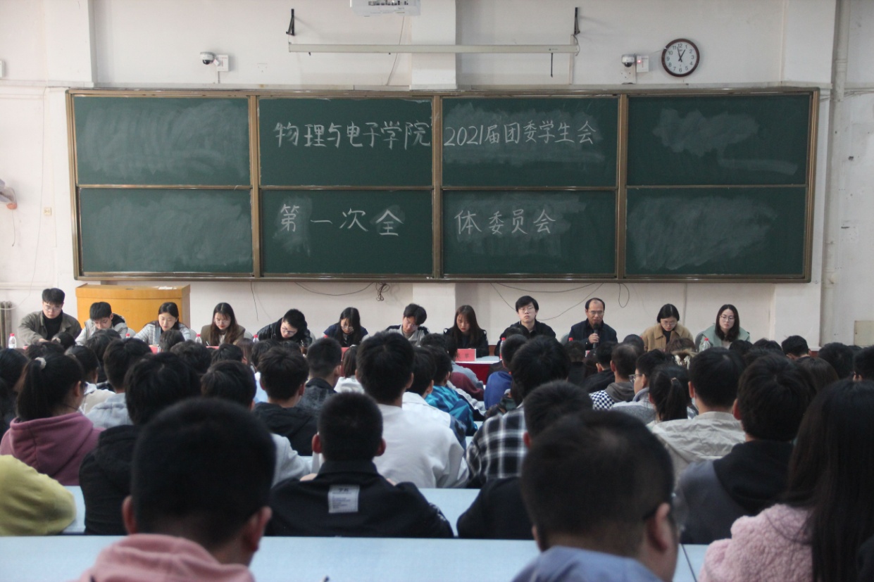 为认真贯彻落实太阳城集团官方网站团委学生会工作部署,10月28日下午,太阳城官网在金明校区综合楼1203教室召开以“构建团结协作学生会”为主题的2021届团委学生会第一次全体委员会。出席会议的有党委副书记刘寒冰、团委副书记姚星宇、学生会全体成员。