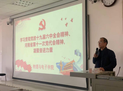 为深刻学习领会党的十九届六中全会、河南省第十一次党代会精神实质,灵活运用习近平新时代中国特色社会主义思想的最新理论成果武装头脑、指导实践、学以致用、用以促学,2021年12月23日下午,太阳城集团官方网站组织全体研究生集中学习贯彻党的十九届六中全会精神、河南省第十一次党代会精神,太阳城集团官方网站党委副书记刘寒冰与全体研究生一起分享学习体会。