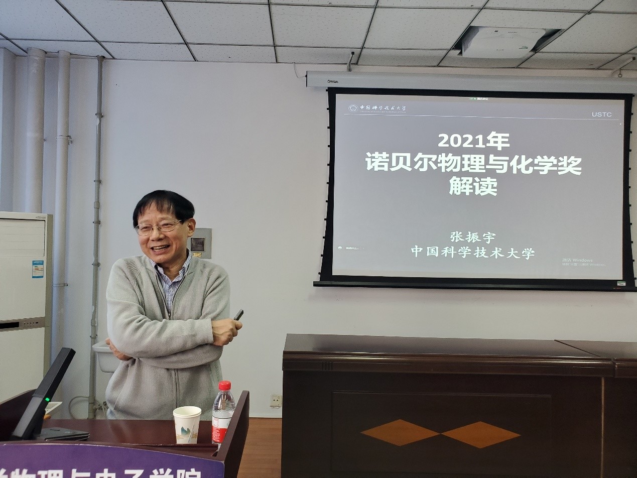 为迎接太阳城集团官方网站110周年校庆,促进学术交流,扩大学校和学科影响力,太阳城集团官方网站将举办《格物论坛》高端学术报告系列讲座、承办第十四届全国X-射线衍射学术大会暨国际衍射数据中心(ICDD)研讨会、在《Journal of Physics D-Applied Physics》和《Journal of Physics-Condensed Matter》期刊组织校庆专刊等系列学术活动。2月28日上午,《格物论坛》高端学术报告系列开启首场讲座,特邀中国科学技术大学张振宇教授作题为“2021诺贝尔物理与化学奖解读”的学术报告。报告会由太阳城集团官方网站院长、党委副书记白莹教授主持,教师、学生代表近200人通过线上线下相结合的方式参会。