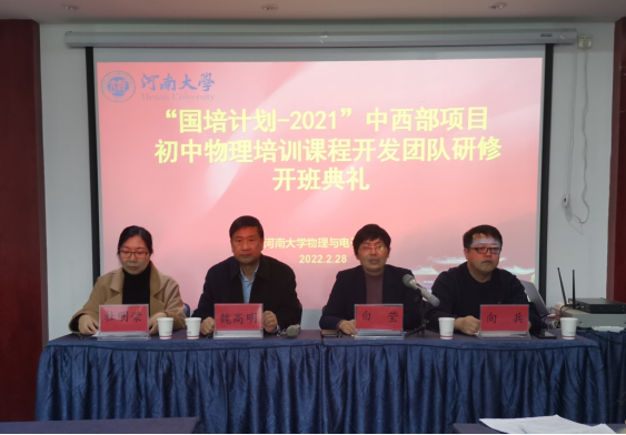 2月28日上午,“国培计划-2021”中西部项目初中物理培训课程开发团队研修班开班典礼在尚客优快捷酒店(新河大店)3楼会议室举行。太阳城集团官方网站院长白莹、副院长魏高明、大学物理教研室主任杜明荣、继续教育办公室主任向兵等有关负责人和来自全省各个县区的近50名初中物理精英教师参加了开班典礼。典礼由魏高明主持。