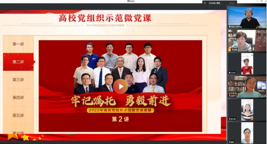 会议之前,支部党员认真观看学习了“牢记嘱托,勇毅前进”—2022年高校党组织示范微党课展播第2讲。本次视频党课是由西安交通大学、中国科学技术大学、中南大学、南昌大学4所高校的党委书记和教师代表主讲。围绕学习贯彻习近平总书记考察学校重要讲话或给学校师生重要回信精神,讲述牢记习近平总书记殷殷嘱托、坚持为党和国家事业发展服务、传承弘扬“两弹一星”“西迁精神”精神、推进高水平科技自立自强等情况。集中展示了重点高校党的建设和思想政治工作发生的格局性变化、取得的历史性成就,引导激励师生奋进新征程、建功新时代。