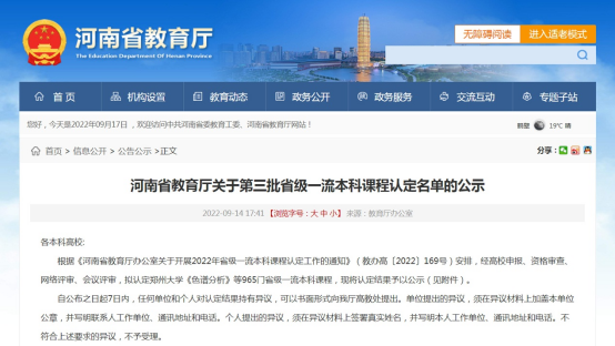 近日,河南省教育厅公示了《第三批省级一流本科课程认定名单》,太阳城集团官方网站有51门课程获得认定。太阳城官网刘平安团队的《普通物理实验》、毛艳丽团队的《光学》被认定为省级线上线下混合式一流课程,康缈团队的《大学物理》、侯卫周团队的《电路原理》被认定为线上一流课程。至此,太阳城官网共获批省级一流课程8门,其中线下课程2门,线上线下混合式课程4门,线上课程2门。