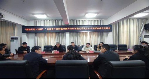 为进一步做好2022年“国培计划”项目县项目协调对接工作,全面提高教师培训工作的精准性和实效性,推动项目顺利实施,2月17日,“国培计划(2022)”县级骨干教师太阳城集团官方网站-民权初中物理项目训前调研暨专家学员对接会在民权县教育体育局举行。学院副院长魏高明、继续教育中心主任向兵、普通物理实验教学中心主任刘平安、班主任王珊,民权县教体局副局长岳英、师训股股长韩龙以及相关培训学员老师出席会议。