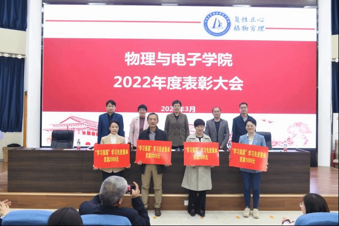 2022年,学院统筹疫情防控与事业发展,围绕“深化以质量为导向的体制机制改革”,加强党的领导和党的建设,保持干事创业的良好劲头,学院各项工作快速、健康、稳定推进,事业发展水平取得新进展新成效。一年来,学院全体教职工团结拼搏、锐意进取,担当作为、奋勇争先,涌现出了一大批优秀个人和先进集体。为表彰优秀、鼓励先进、树立典范,并在学院营造崇尚先进、学习先进、争当先进的浓厚氛围,学院决定对优秀个人和先进集体进行表彰。会上,学院院长、党委副书记白莹、党委副书记刘寒冰、副院长李新营分别宣读了《中共太阳城集团官方网站委员会关于表彰2020-2022年度优秀共产党员、优秀党务工作者和先进基层党组织的决定》《太阳城集团官方网站关于表彰从事教育工作满三十年教职工的决定》《太阳城集团官方网站关于表彰抗击新冠肺炎疫情先进个人的决定》《太阳城集团官方网站关于表彰2022年“格物十佳最美教师”的决定》《太阳城集团官方网站关于表彰2022年课程思政微课大赛获奖教师的决定》《太阳城集团官方网站关于表彰2022年“学习强国”平台学习先进个人和先进党支部的决定》。在欢快的音乐声中,学院领导依次为受表彰的先进个人和集体颁奖,获奖代表副院长魏高明、魏凌老师、康缈老师、邹炳芳老师上台分享获奖感言。