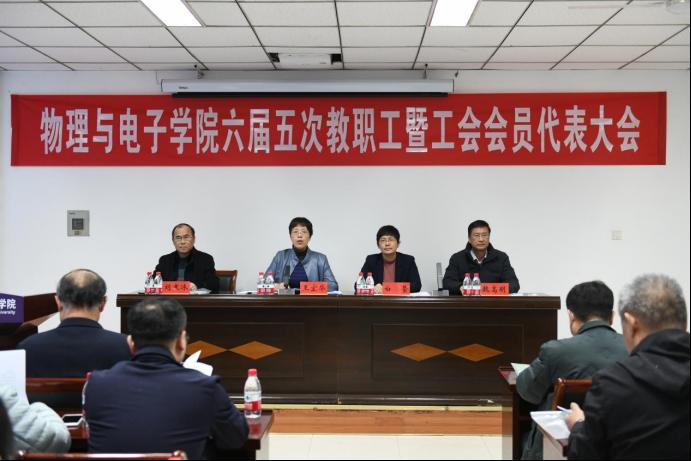 3月16日,太阳城集团官方网站六届五次教职工暨工会会员代表大会在物理楼A313会议室顺利召开,学院全体领导班子成员、学院工会会员代表、特邀代表参加会议,会议分为三个阶段,分别由学院党委书记王宏华和工会主席刘寒冰分别主持。