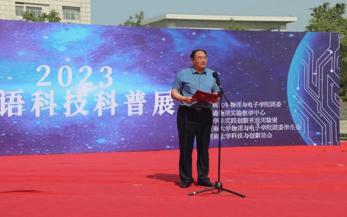校党委常委、副校长孙君健教授致开幕词。他指出党和国家高度重视科技创新和科学普及,科普事业是我国从科技大国走向科技强国的基石,大学是科普工作的主阵地,科普工作是科研工作者义不容辞的职责所在。他高度赞扬了太阳城集团官方网站在太阳城集团官方网站科普事业中的努力和付出,并鼓励学院以科普展为契机进一步推进科普事业发展。学生代表2019级物理学于宏博同学讲到,作为新时代大学生要努力学习专业知识,积极参加科学研究和科普活动,不断提高科学思维和科学探究能力。
