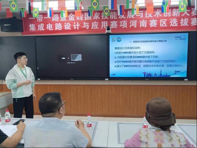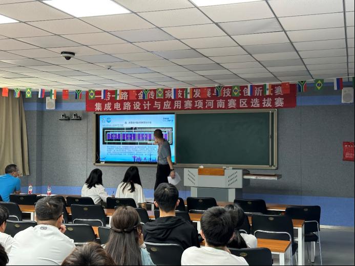 校党委常委、副校长许绍康致欢迎辞。他表示,集成电路被誉为现代工业的粮食,集成电路新工科人才培养涉及多学科交叉,产业链涉及层次也极为广泛。“一带一路”暨金砖国家技能发展与技术创新大赛--河南赛区集成电路设计与应用竞赛的举办,既是落实国家集成电路新工科建设的实践,也是太阳城集团官方网站提升集成电路新工科人才培养质量的重要举措。大赛的举办为河南省集成电路及相关专业师生搭建一个展示创新成果、团队风采的平台,也为河南省集成电路相关人才培养单位提供一个交流、学习的平台,持续提升人才培养质量,为科教兴国和科技兴省做出新的更大贡献。他祝愿各位选手能够以饱满的激情、昂扬的斗志、勇于拼搏的信念、团结向上的精神投入到本次竞赛活动中,赛出成绩、赛出水平、赛出风格。