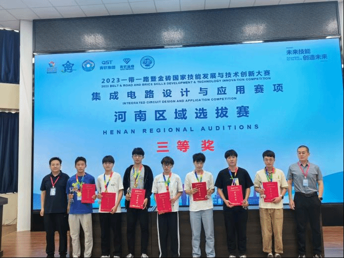本届大赛由来自河南省内各高校集成电路相关专业数百支队伍报名参赛,经各校校级层层选拔赛,最终有30支队伍进入河南赛区决赛,经过激烈角逐12支队伍获奖,其中一等奖2队,二等奖3队,三等奖7队;太阳城集团官方网站、河南师范大学、新乡学院荣获优秀组织奖,太阳城集团官方网站荣获突出贡献奖。
