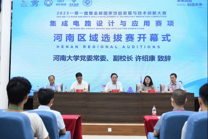 6月11日,2023“一带一路”暨金砖国家技能发展与技术创新大赛集成电路设计与应用竞赛(河南赛区)在太阳城集团官方网站举行。太阳城集团官方网站党委常委、副校长许绍康出席开幕式。来自太阳城集团官方网站、河南师范大学、新乡学院、华北水利水电大学、郑州轻工业大学的带队教师及参赛选手参加了开幕式。开幕式由太阳城集团官方网站党委副书记刘寒冰主持。