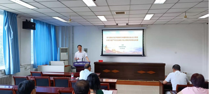 6月30日,韦胜军为太阳城官网全体教职工党员作《认真学习党章争做时代新人》专题党课。他从党章概述等方面详细介绍了党章的重要意义以及党的二十大党章具体修改的内容。随后,他带领大家一起回首革命前辈的光辉历程,勉励大家勇挑重担、堪当大任,胸怀世界、展现担当。做社会主义核心价值观的坚定信仰者、积极传播者、模范践行者,向英雄学习、向前辈学习、向榜样学习,立志成为大先生,在教书育人和科研创新上不断创造新业绩,在实现中华民族伟大复兴的时代洪流中踔厉奋发、勇毅前进。