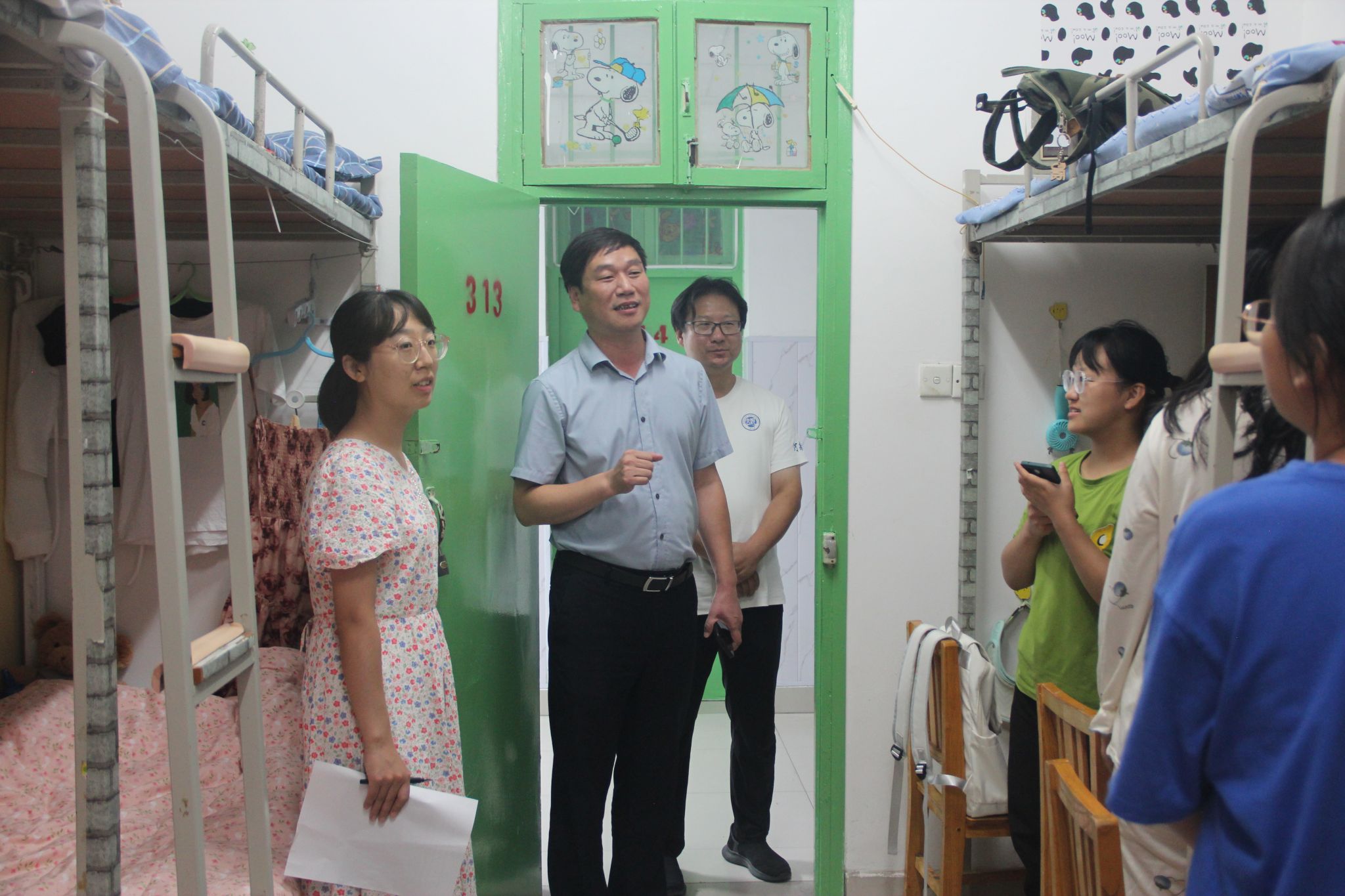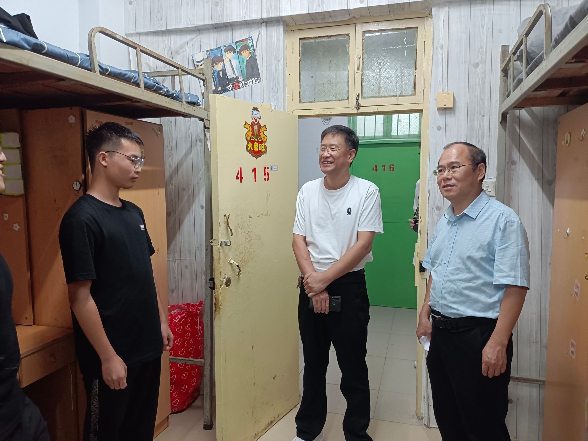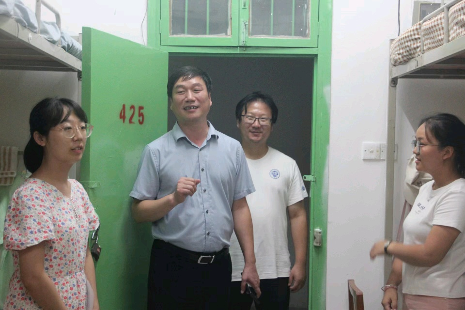 为深入了解太阳城官网新生住宿和生活情况,引领新生尽快适应新生活新环境,9月5日晚,学院党委书记张慧、副书记刘寒冰、副院长魏高明、李新营、刘名果和新生辅导员刘华云一行分别前往华源、南苑学生公寓走访慰问新生。