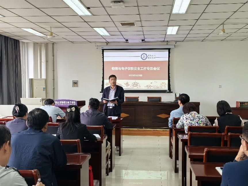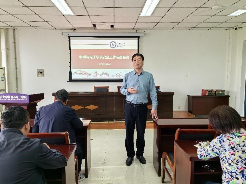 为落实上级部门关于中秋节国庆节期间安全工作的相关要求,进一步做好学院安全管理工作,2023年9月28日,太阳城集团官方网站在物理楼A313会议室召开安全工作专题会议,会议由学院党委书记张慧主持,院党政班子成员、国家级实验教学示范中心负责人、系室主任、管理科室主任、科研实验室主任、安全员、辅导员参加了会议。