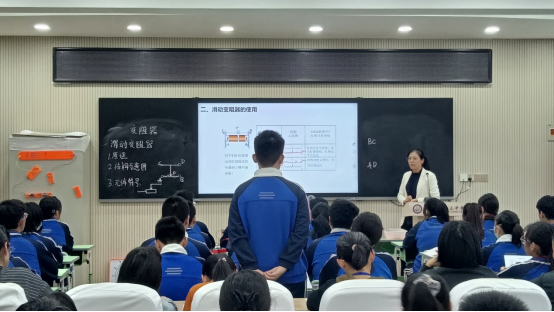 学员们现场观摩了十三中教师李自芬讲授的《变阻器》一课。课后,李老师与学员们进行了交流,从教学目标的设置、重点难点的突破、教学手段的运用、师生互动的引导等方面,进行了全方位的分析,国培班的学员们也分别从专业的角度进行了细致入微的点评,给予了高度评价和充分肯定,认为李老师的课有趣、有用、引思、简洁,以课标定目标研究课标设计教学重难点,以实验为引导激发学生学习兴趣和动手能力,以问题为导向层层递进引发学生深入思考,教学效果好。