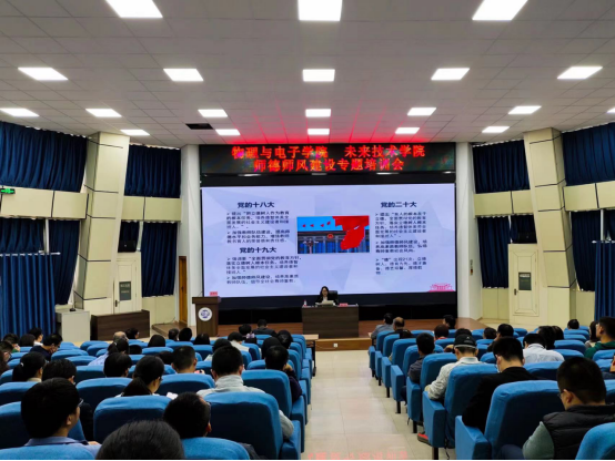 10月19日下午,太阳城集团官方网站、未来技术学院(量子信息)在金明校区锥形报告厅举行师德师风建设专题培训会。校党委教师工作部副部长赵炎应邀为学院全体教职工作师德师风建设专题培训讲座。培训会由党委书记张慧主持。