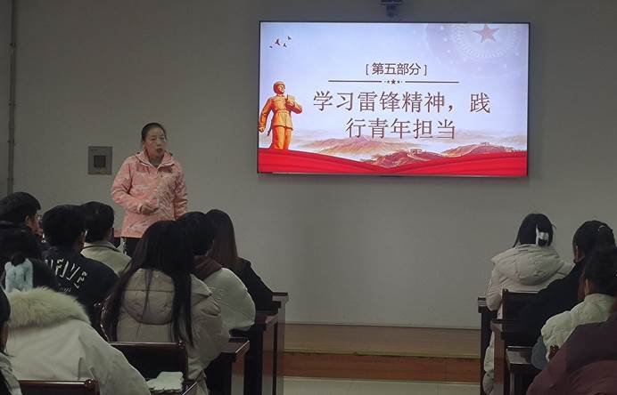 在“赓续雷锋精神,厚植青年担当”主题班会上,本科生通信工程党支部书记、2022级辅导员张婷老师深入浅出地解读了雷锋的先进事迹,号召同学们从身边小事做起,传承雷锋精神,树立正确的人生观和价值观,并带领全体学生共唱《学习雷锋好榜样》表达对雷锋精神的敬仰和对学习雷锋精神的渴望。