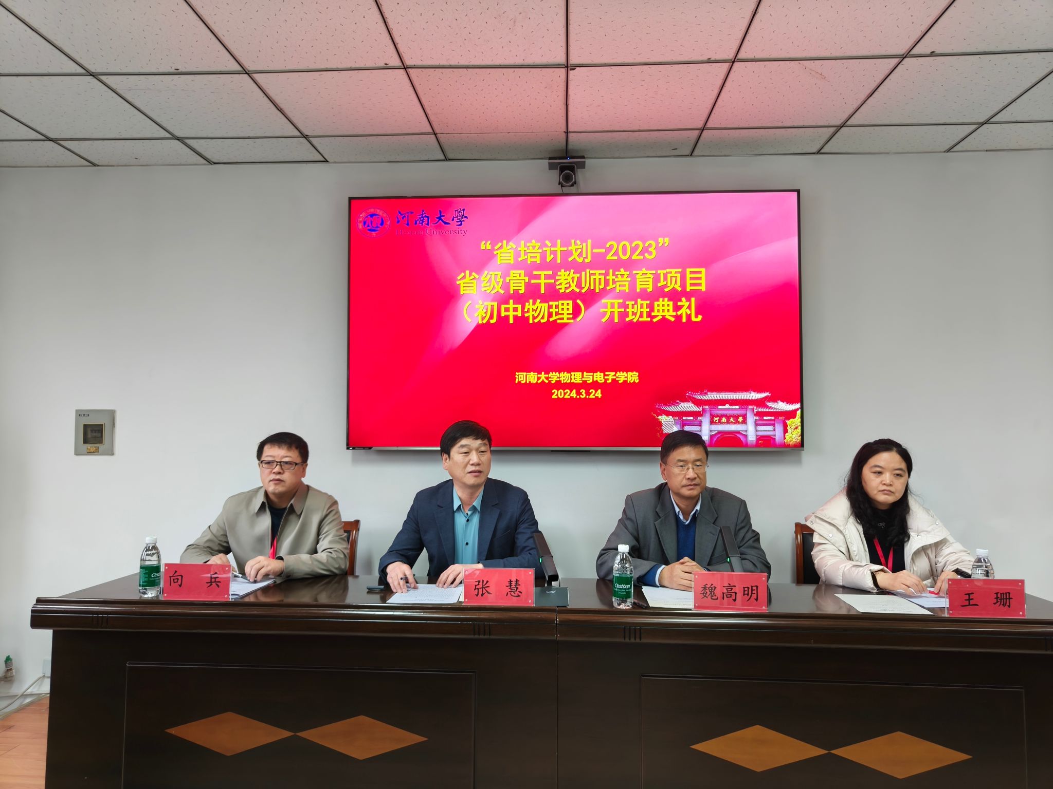 3月24日上午,“省培计划-2023”省级骨干教师培育项目(初中物理)开班典礼在太阳城集团官方网站313会议室举行。学院党委书记张慧、副院长魏高明、继续教育办公室主任向兵、班主任王珊等有关负责人和来自全省各个县区近50名初中物理教师参加了开班典礼。