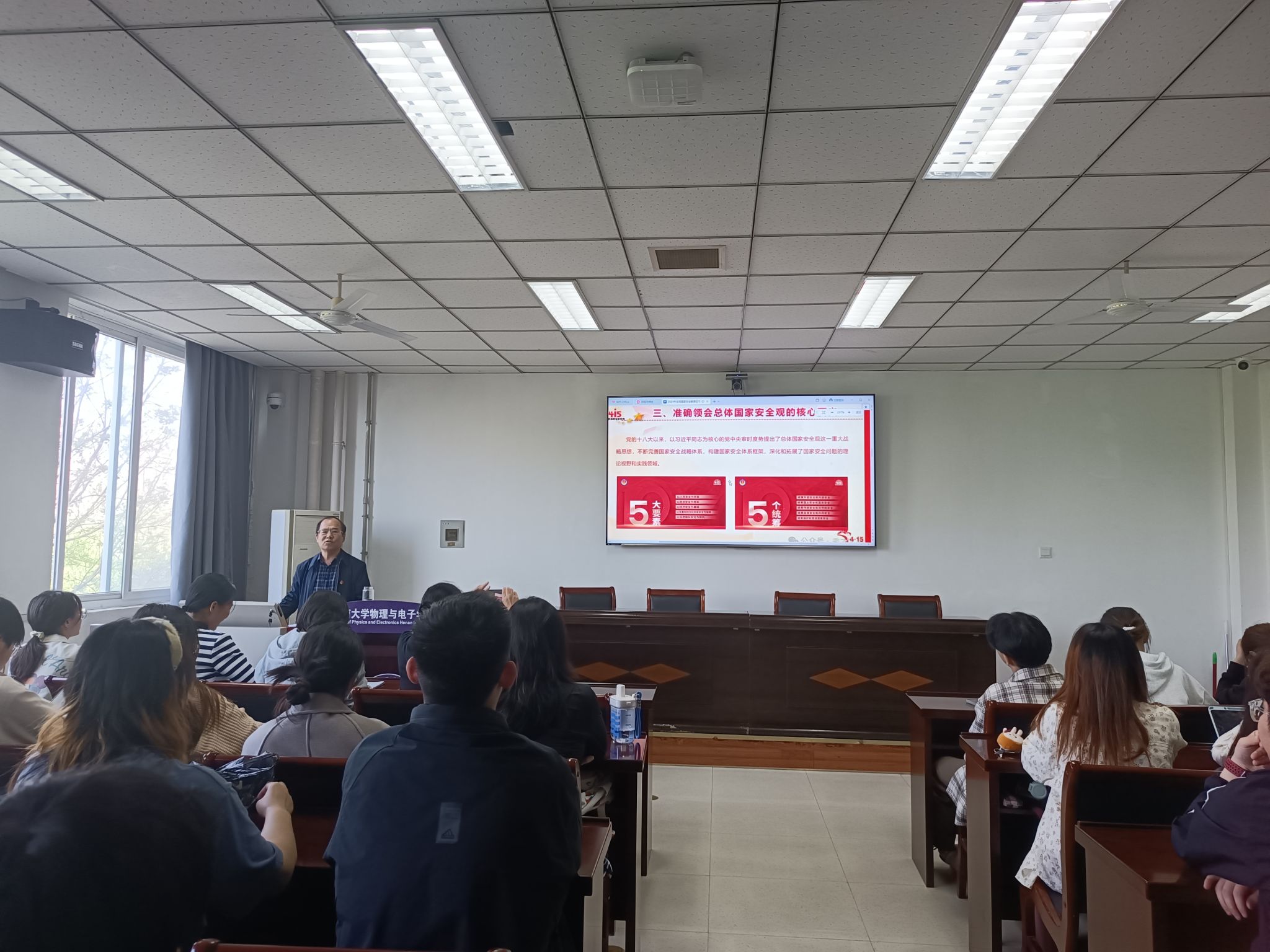 在第九个全民国家安全教育日的到来之际,为增强广大师生的国家安全意识,筑牢总体国家安全观,4月12日,学院在A313召开“国家安全教育日”专题报告会。学院党委副书记刘寒冰为全体辅导员及各年级学生干部作辅导报告。