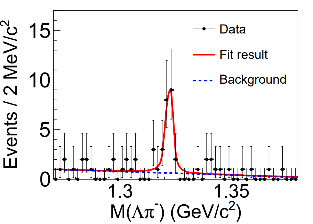 图2数据中M(Λπ-)的分布,可见显著的Ξ-信号